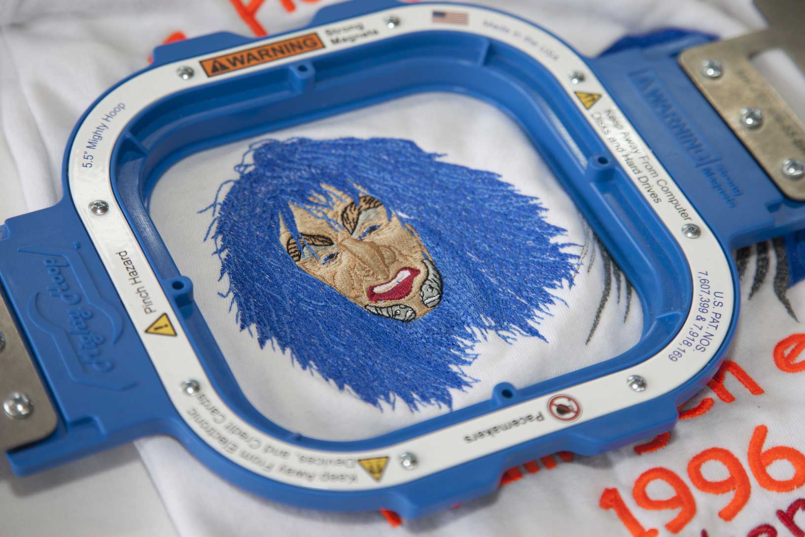 - Bestickt werden kann alles was von einer Sticknadel durchstochen werden kann, z.B. T-Shirts, Polo, Sweatshirts, Jacken, Mützen, Decken, Handtücher und Taschen.